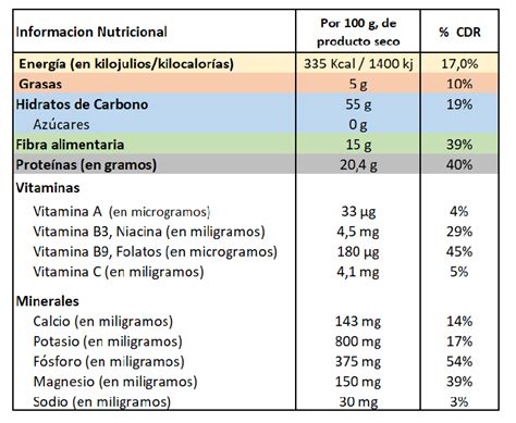 A continuación, se presenta una tabla con la información nutricional general del garbanzo: