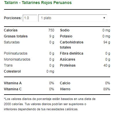 | Tallarines (100g) | 175 |