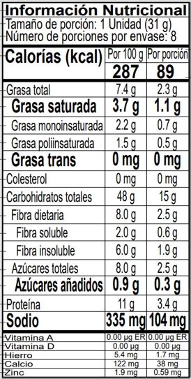 *Los valores nutricionales pueden variar. Consulta siempre la etiqueta del producto.