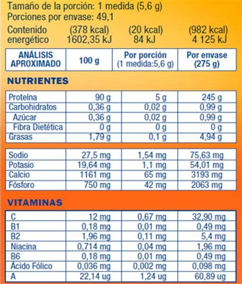 Información Nutricional de Proteinex