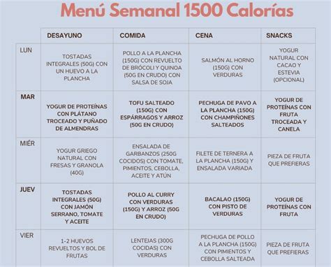 Descubre un ejemplo de menú de 1500 calorías diarias, ideal para mantener un peso saludable y disfrutar de una alimentación equilibrada con consejos de nutricionistas. […]